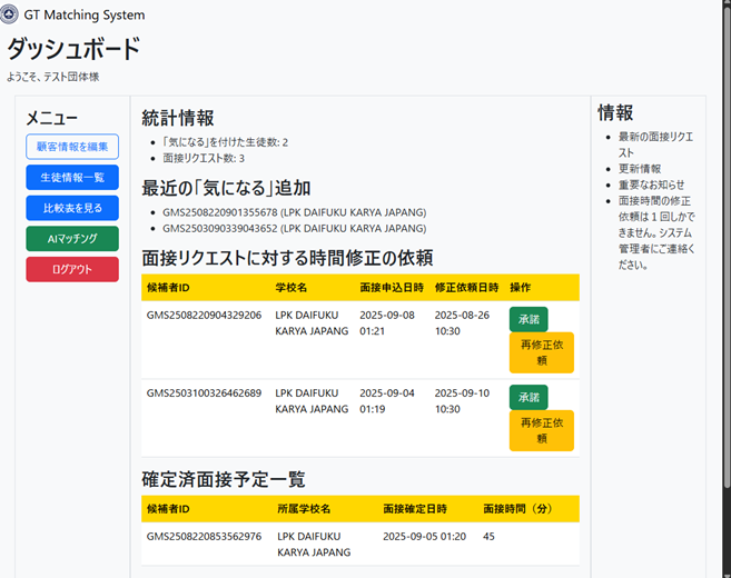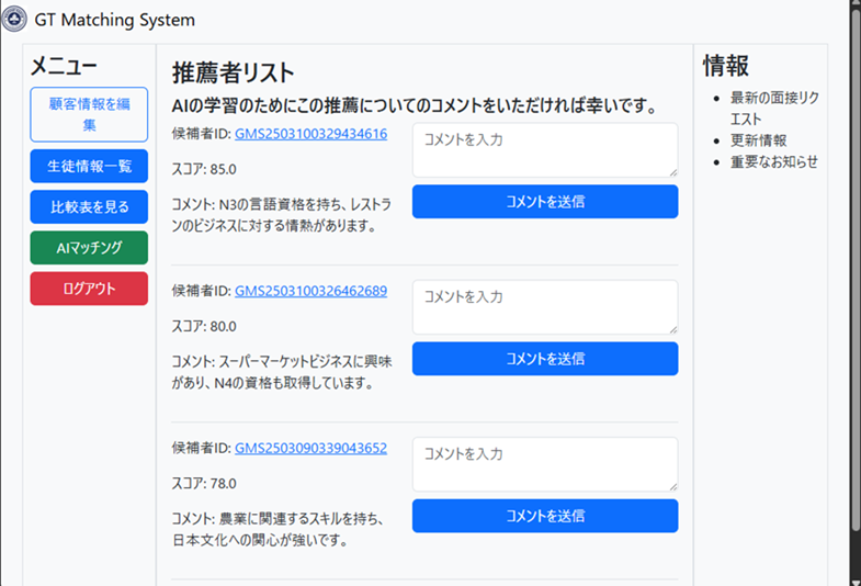 Klien dapat melihat permintaan wawancara dan materi analisis perbandingan dari sini.