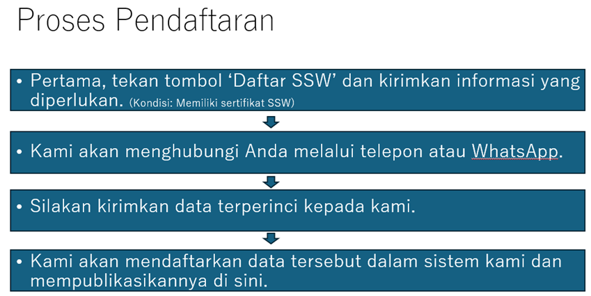 Informasi mengenai SSW dapat dicari dan diuraikan dari perusahaan Jepang yang mempekerjakan dan organisasi pendukung yang terdaftar.